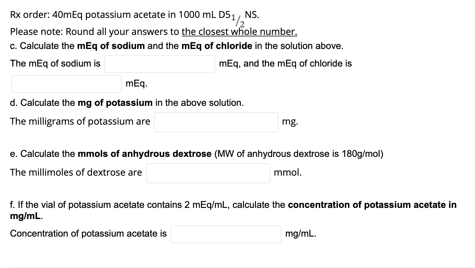 Solved Ns Rx Order 40meq Potassium Acetate In 1000 Ml Chegg Com